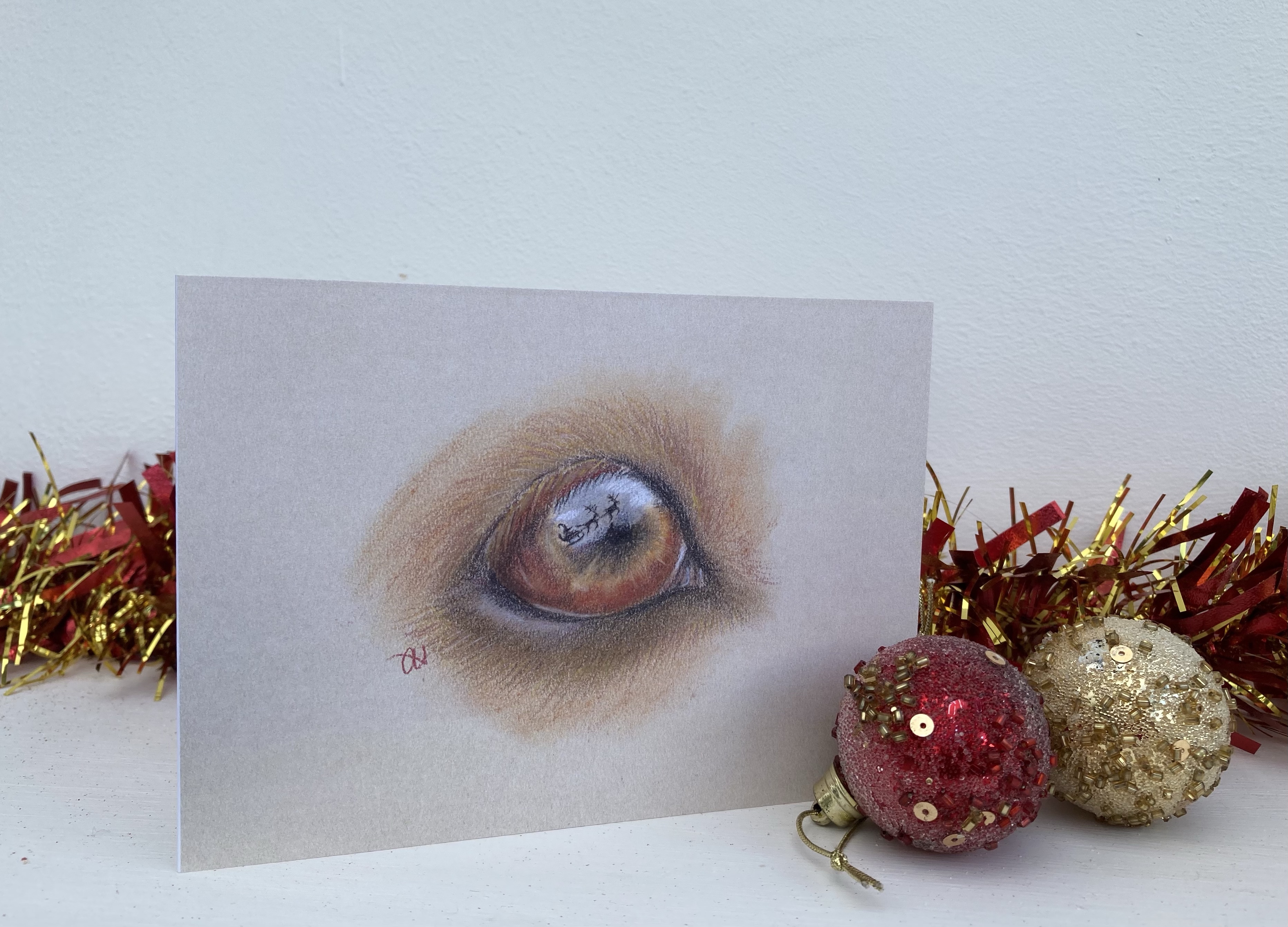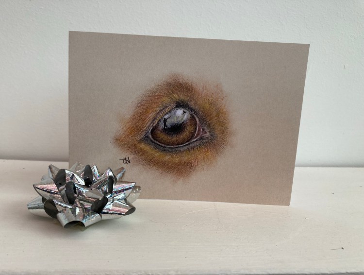 Pack of six cards (three horse eye and three dog eye) with natural coloured envelopes. Cards bundled in raffia (no cellophane). Made in England
