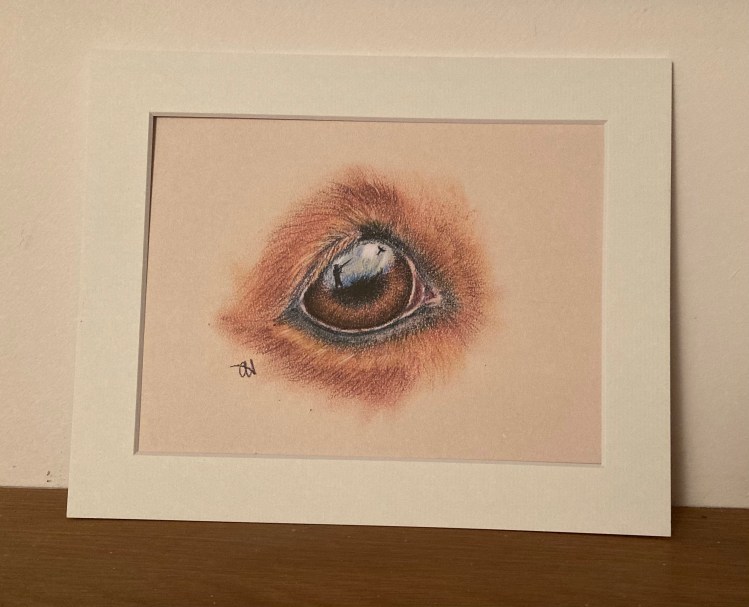 Print from an original pastel eye study of a horse.